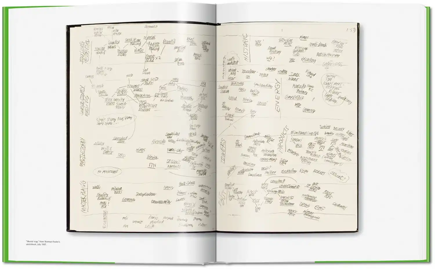 Questa logica prosegue nella rappresentazione. Foster non sviluppa una teoria astratta, ma lavora attraverso l’osservazione. Schizzi, diagrammi e riferimenti visivi assumono il ruolo dei concetti. Il libro somiglia quindi più a uno strumento di lavoro che a una raccolta di saggi. Mostra non solo le idee, ma anche la loro origine. Il disegno diventa metodo.